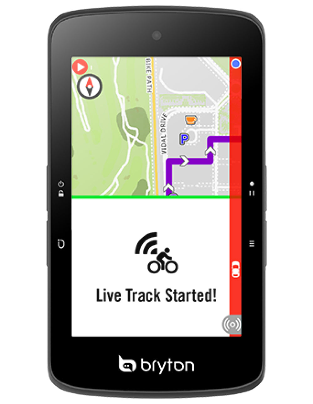 Con la nueva función Bryton Live Track, puedes compartir tu estado de conducción y tu ubicación en tiempo real con familiares y amigos.