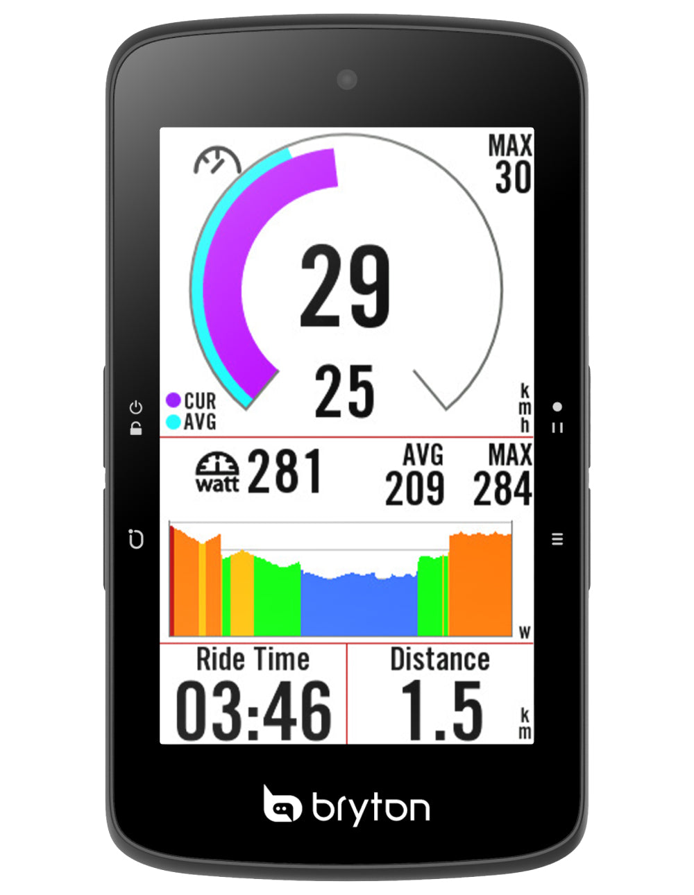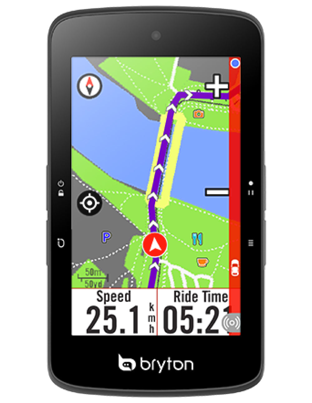 Diseñado con una pantalla grande de 3,4 pulgadas, el Rider S800 utiliza tecnología MIP y una capa reflectante para optimizar la visualización en exteriores. La amplia pantalla MIP y el bisel estrecho ofrecen una experiencia de visualización clara y de alto contraste, lo que convierte a este ciclocomputador con GPS en el dispositivo estrella de Bryton y disfruta de una claridad sin concesiones.