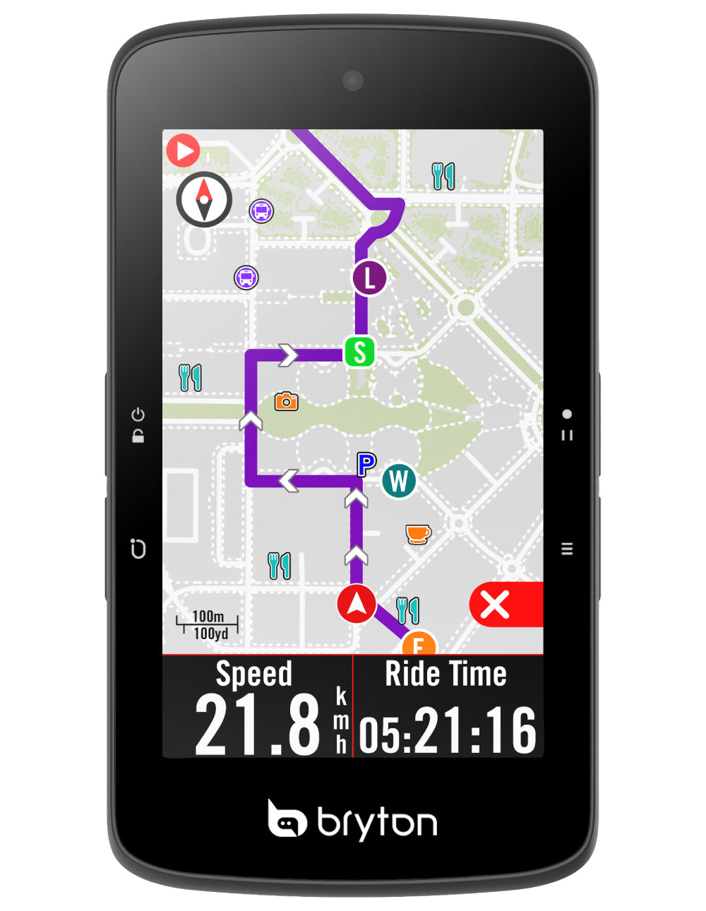 A través de la aplicación Bryton Active, podrás elegir rutas, invitar a amigos a unirse a un paseo en grupo y preestablecer mensajes en la aplicación para enviarlos al ciclocomputador. Puedes usar la función de reconocimiento de voz para ingresar mensajes mientras pedaleas.