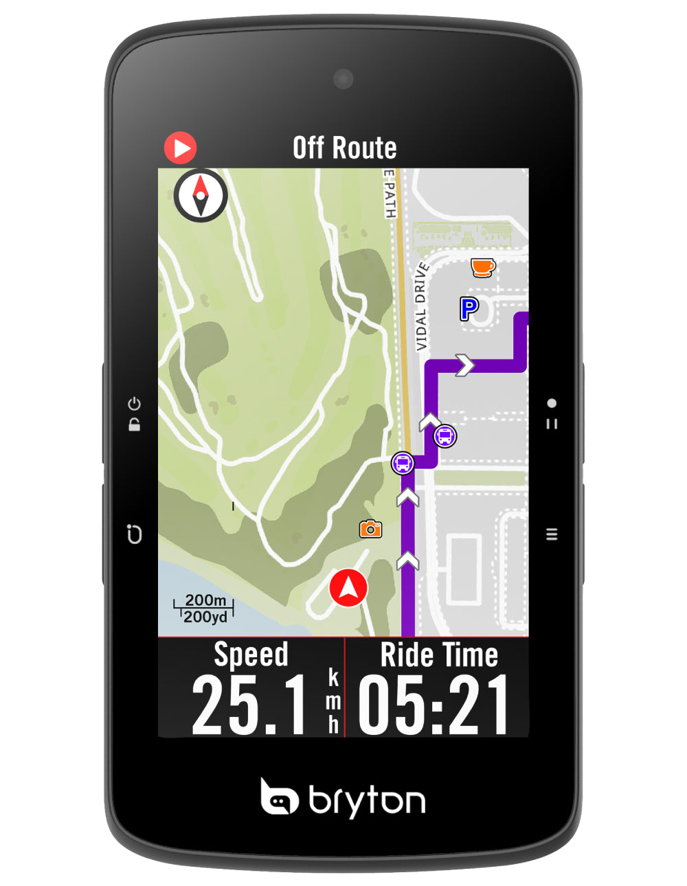 El Rider S800 viene con mapas OSM (OpenStreetMaps) precargados, con un nivel de zoom mejorado de 16 y puntos de interés en pantalla, como tiendas de bicicletas, hospitales, puntos de agua y más. Al pasar el cursor sobre un punto de interés, se muestra una breve descripción. Los mapas también incluyen senderos para bicicletas de montaña y otras características todoterreno.