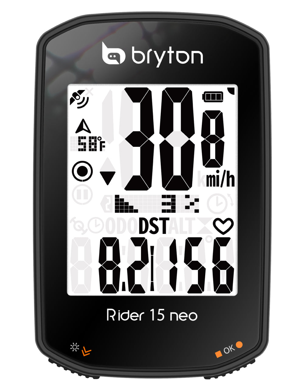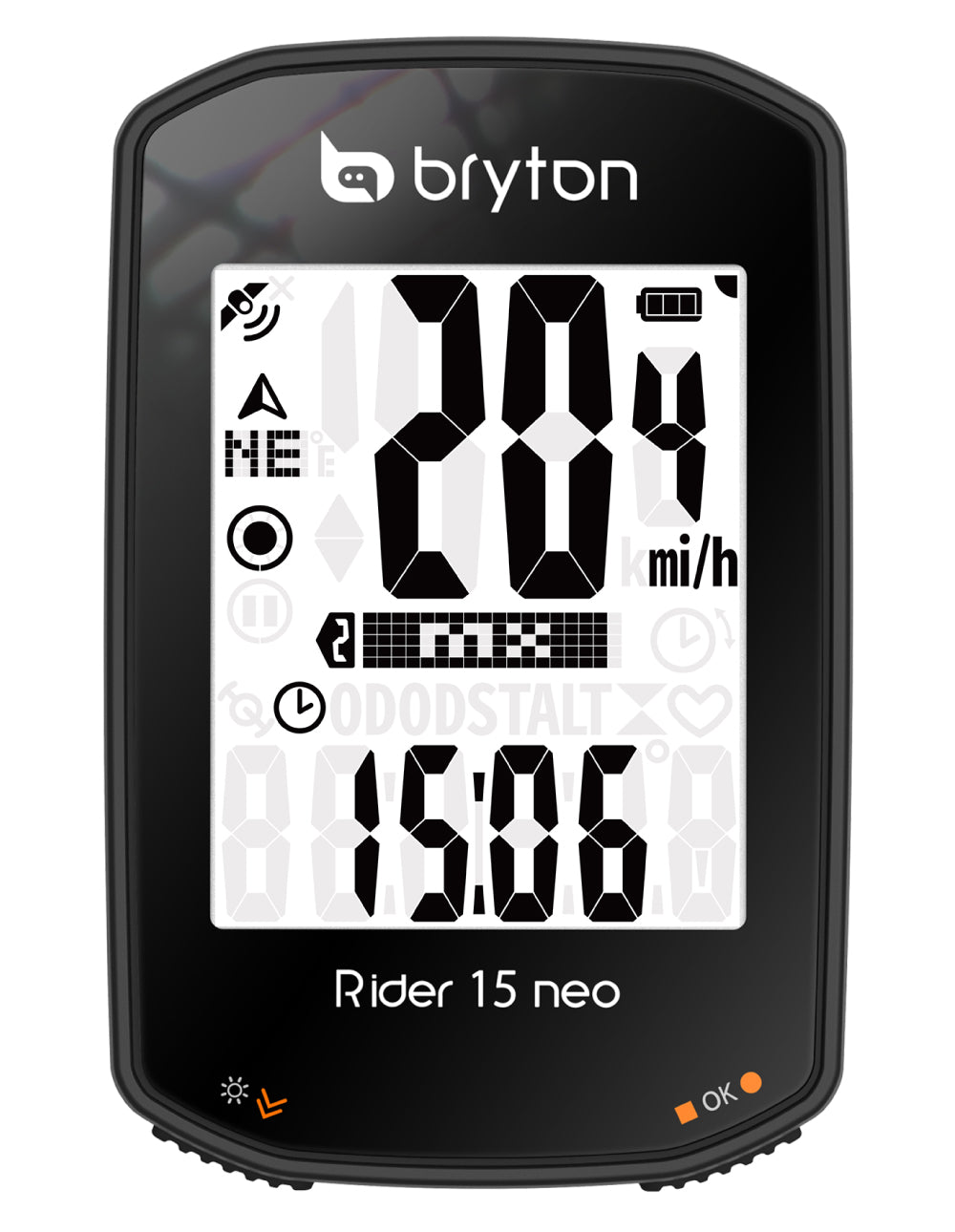 Rider 15 neo comes with a clear 2“ screen and 3 intuitive buttons, as well as improved software, more than 21 functions, and an orientation mode for displaying which direction the rider is going.