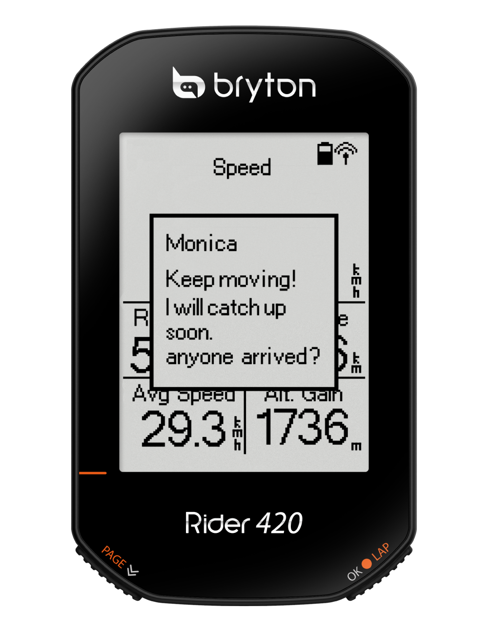 Rider 420 provides notifications whenever phone calls, emails or text messages are received after simple BLE pairing with Android/iOS smart phones.