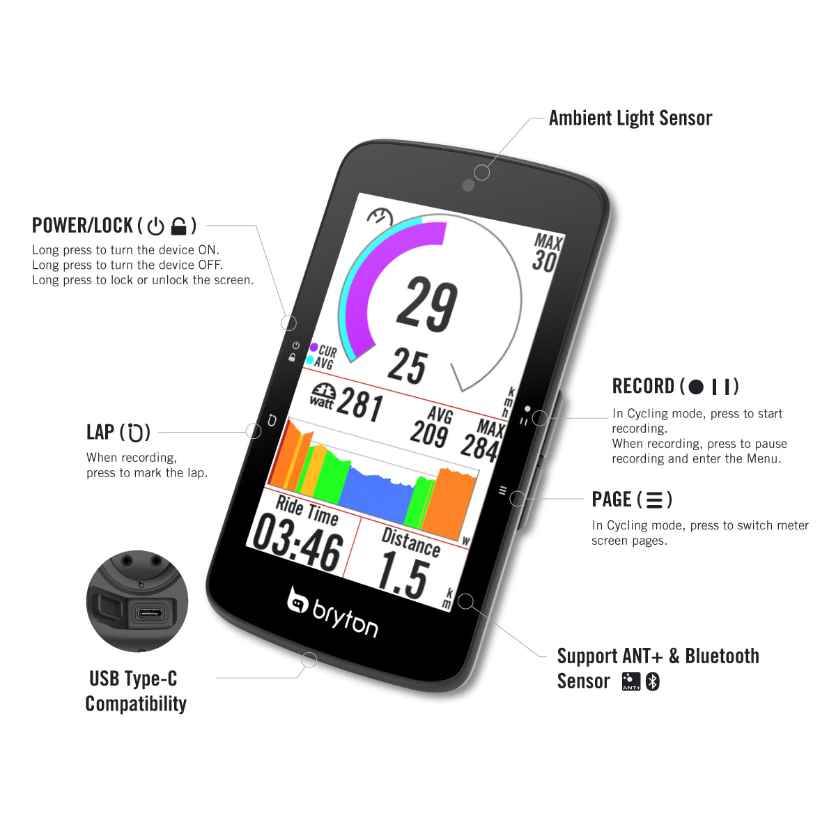 Through the Bryton Active App, you can choose routes, invite friends to join group rides, and preset messages in the app to send from the bike computer. During your ride, you can use the voice recognition feature to input messages.